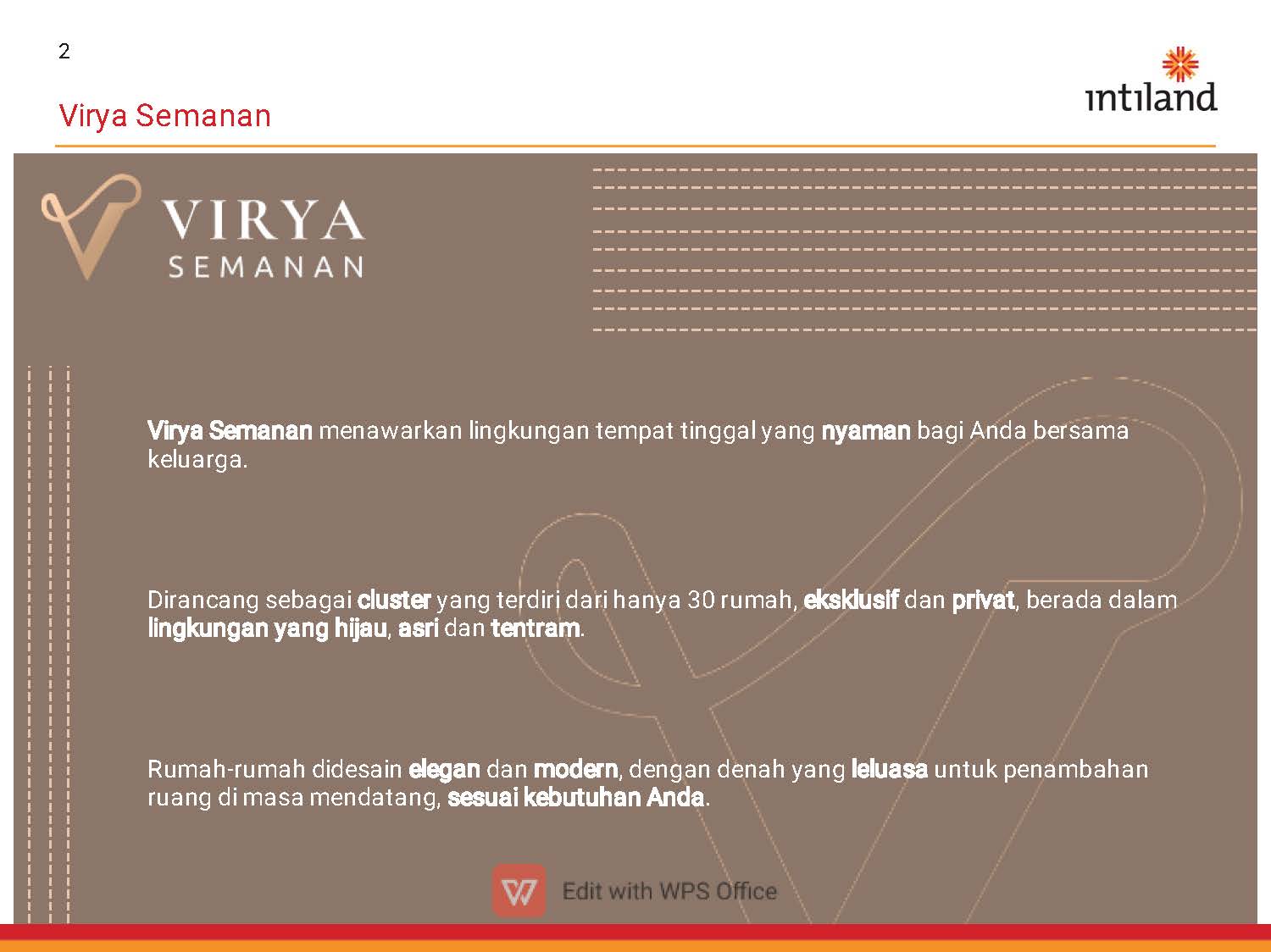 Cluster VIRYA, merupakan Cluster terakhir di TAMAN SEMANAN INDAH, Developed by INTILAND GROUP.