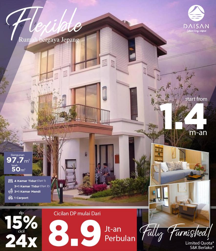 Daisan, proyek hasil kolaborasi SWAN CITY dan Mitsubishi Estate Residence, menghadirkan residential berkonsep unik(Rumah Ala Jepang). Berjarak 1 KM dari Pusat CBD AREA SWAN CITY. Dekat dengan Future Exit Toll Bandara.