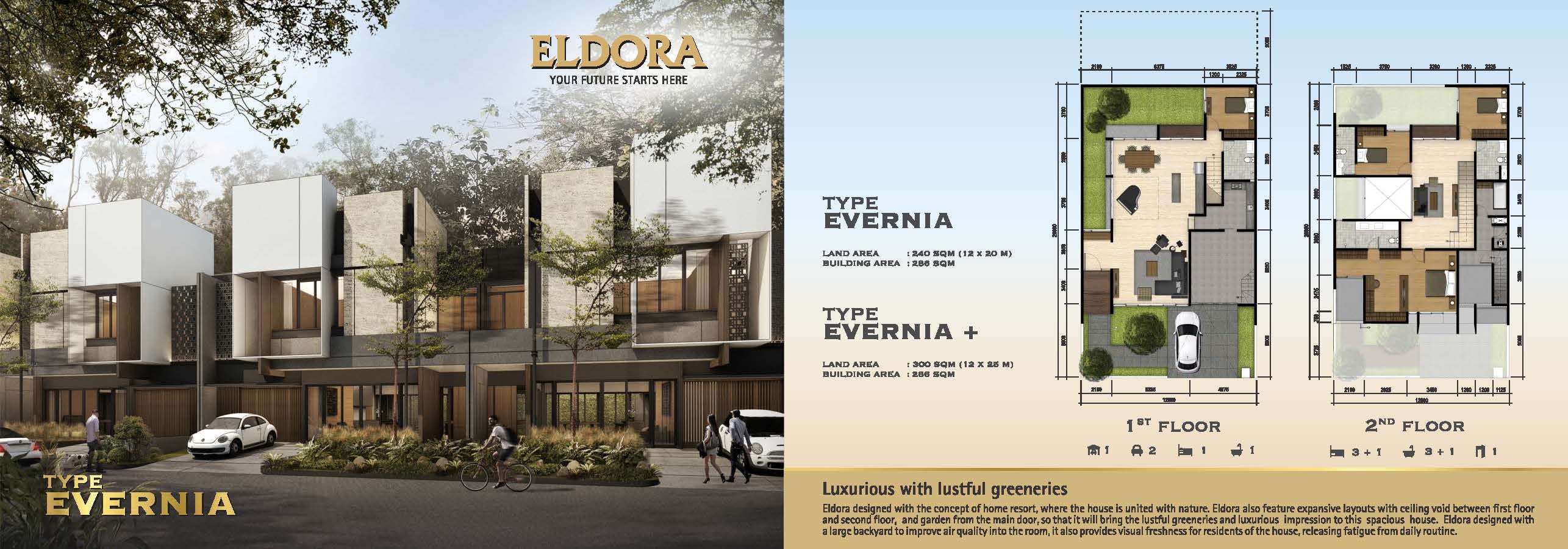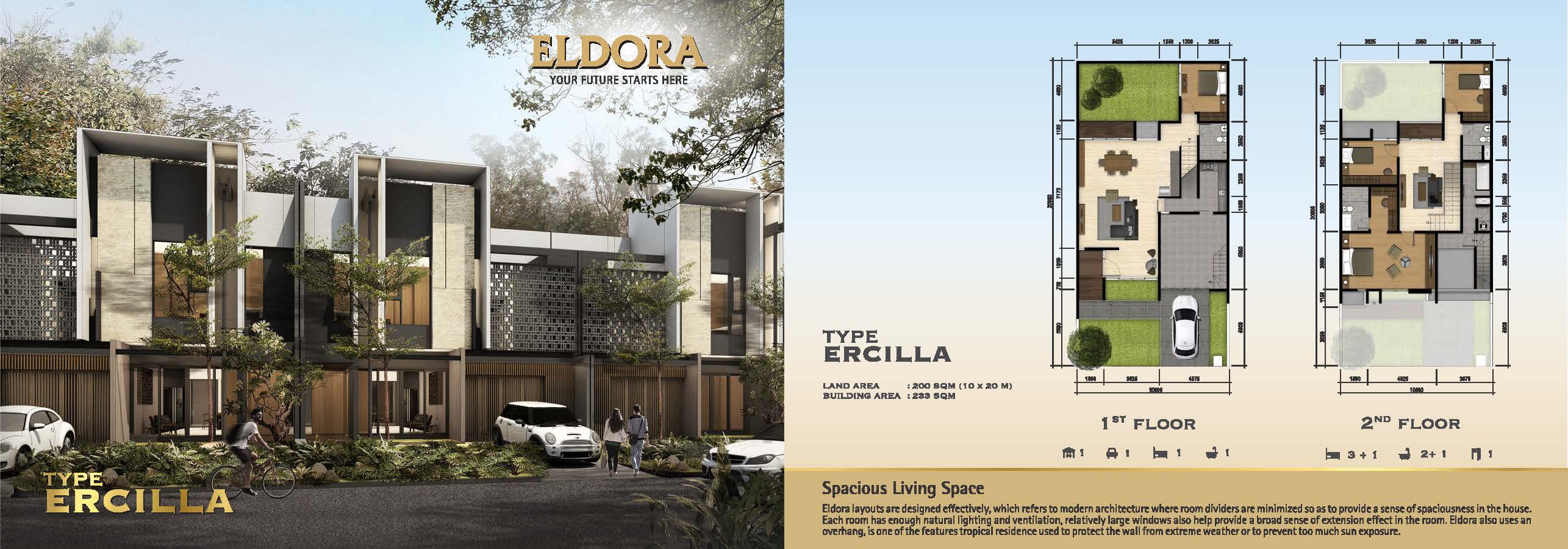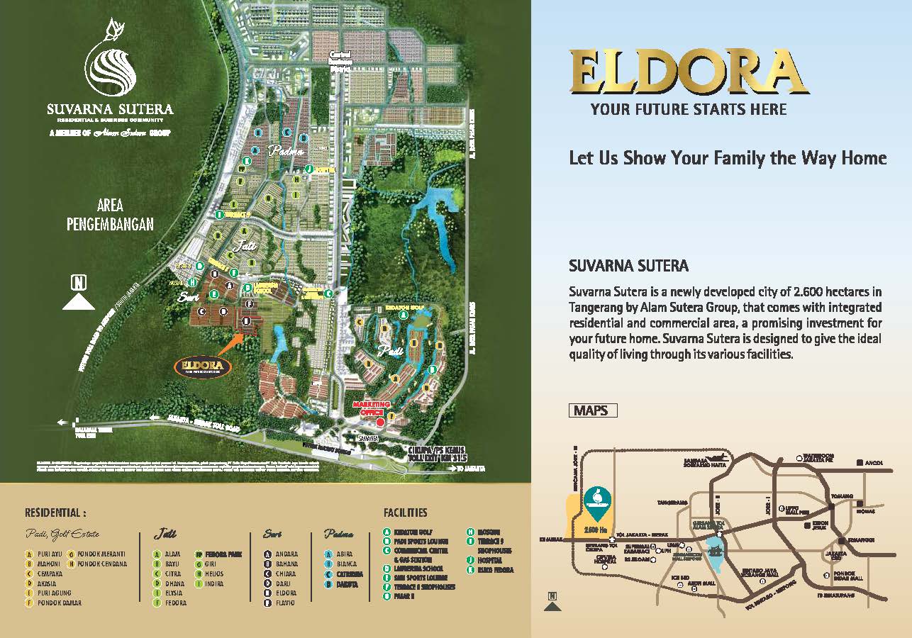 Sebuah perumahan berkonsep landscape taman dari Spanyol dengan tema utama mediterania yang lengkap dengan gerbang Andlusite, Spanish Green Tunnel, dan Palacio Garden di tengah Cluster Eldora.