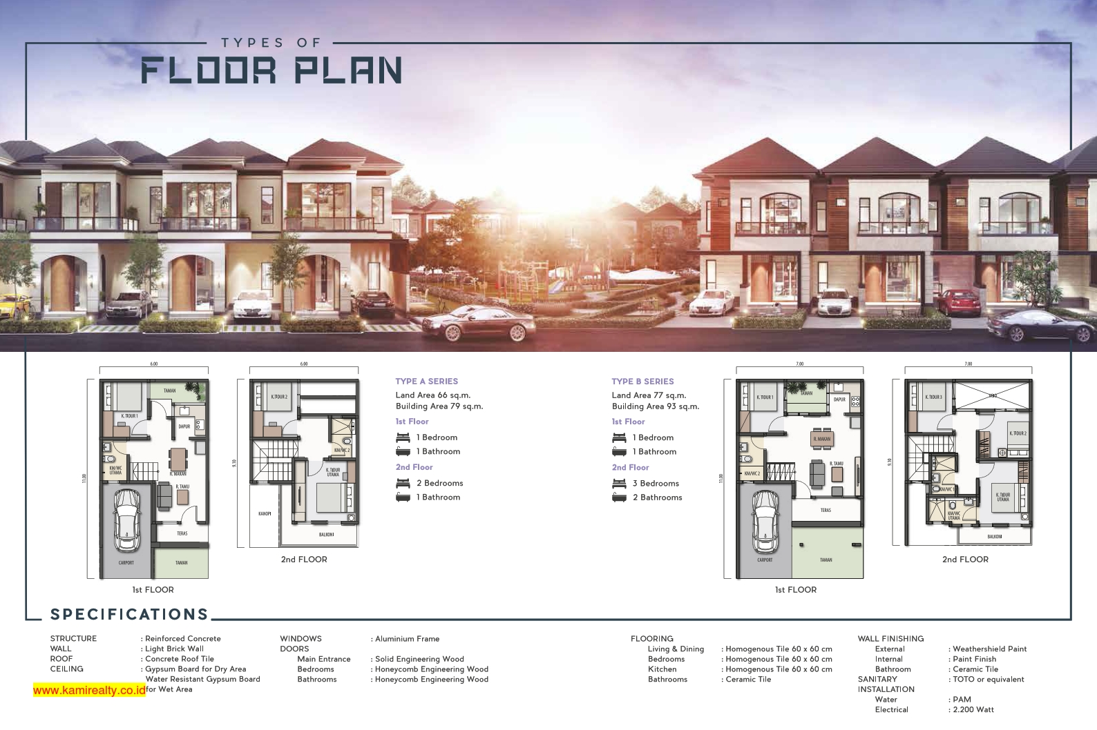 Tipe A Series, LT / LB : 66 / 79 m2. Terdapat 3 Bedroom + 2 Bathroom.