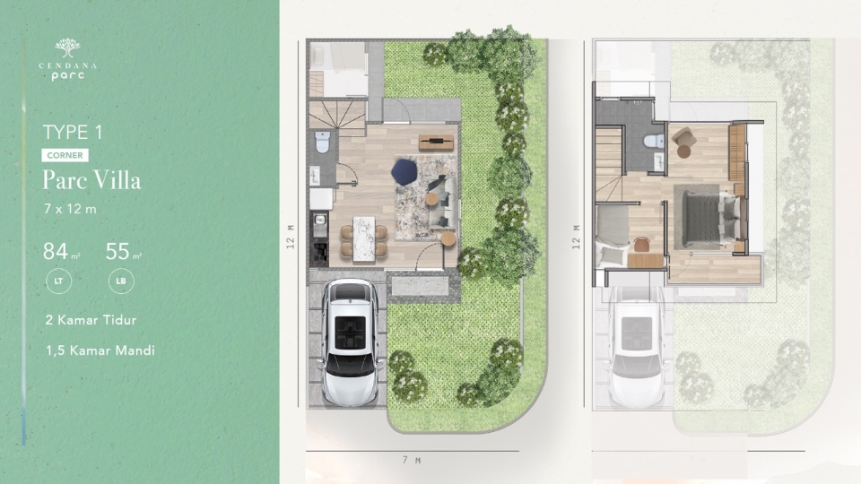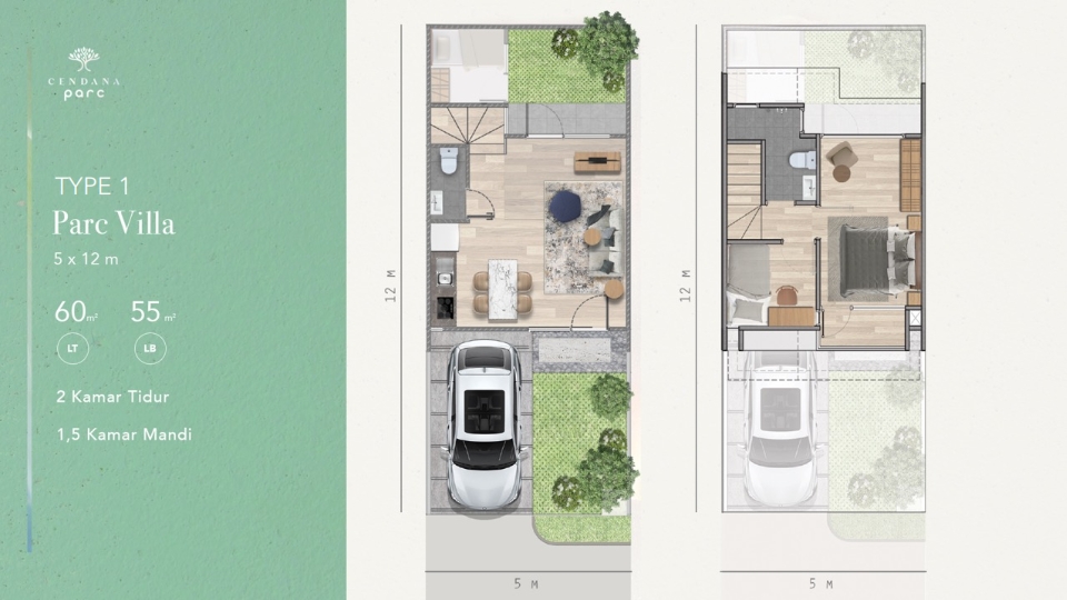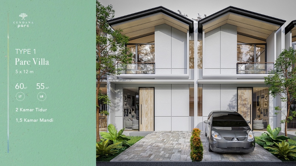 Type 1 Parc Villa, 5x12m, LT.60 m2, LB.55 m2, Harga mulai 675 jt.
