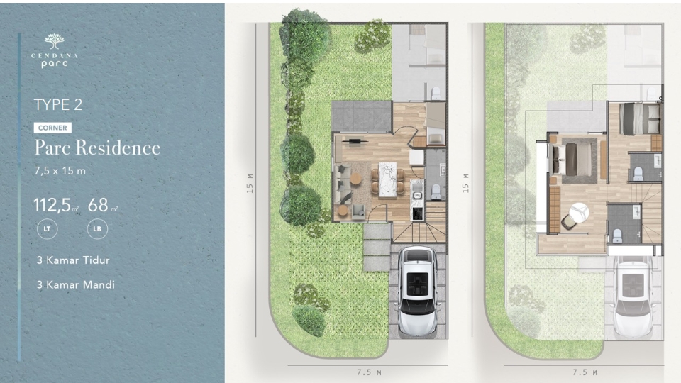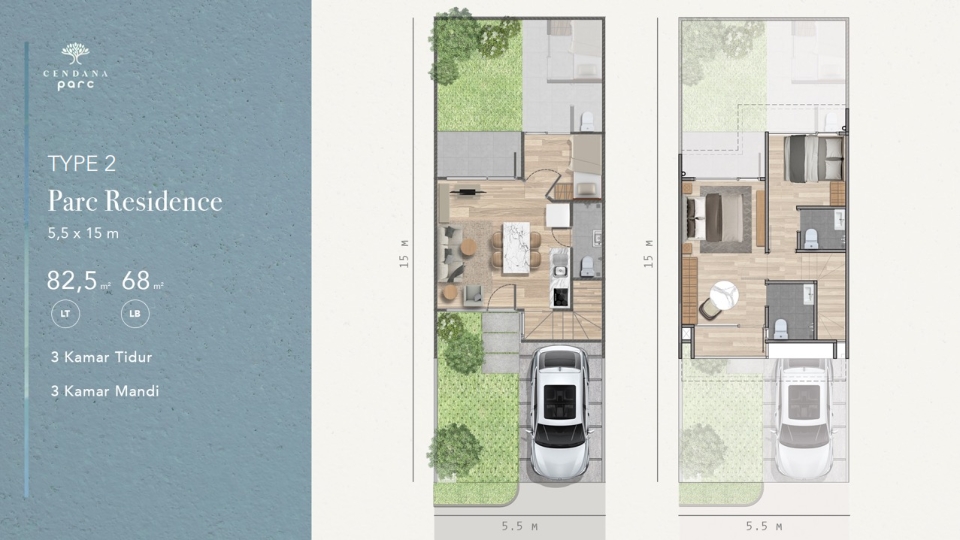 Type 2 Parc Residence, 5.5x15m, LT.82.5 m2, LB.68 m2, Harga mulai 868 jt.