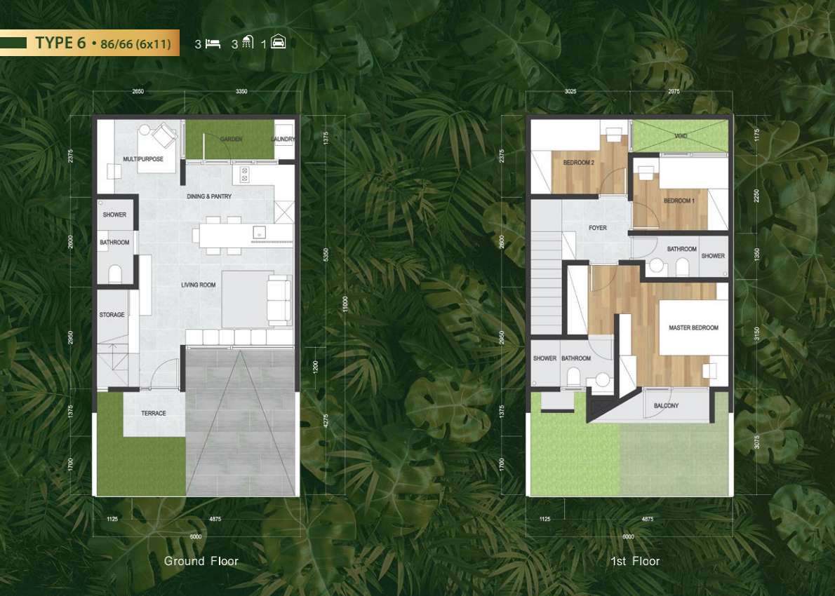 – LT/LB: 66/86 m² (6×11)