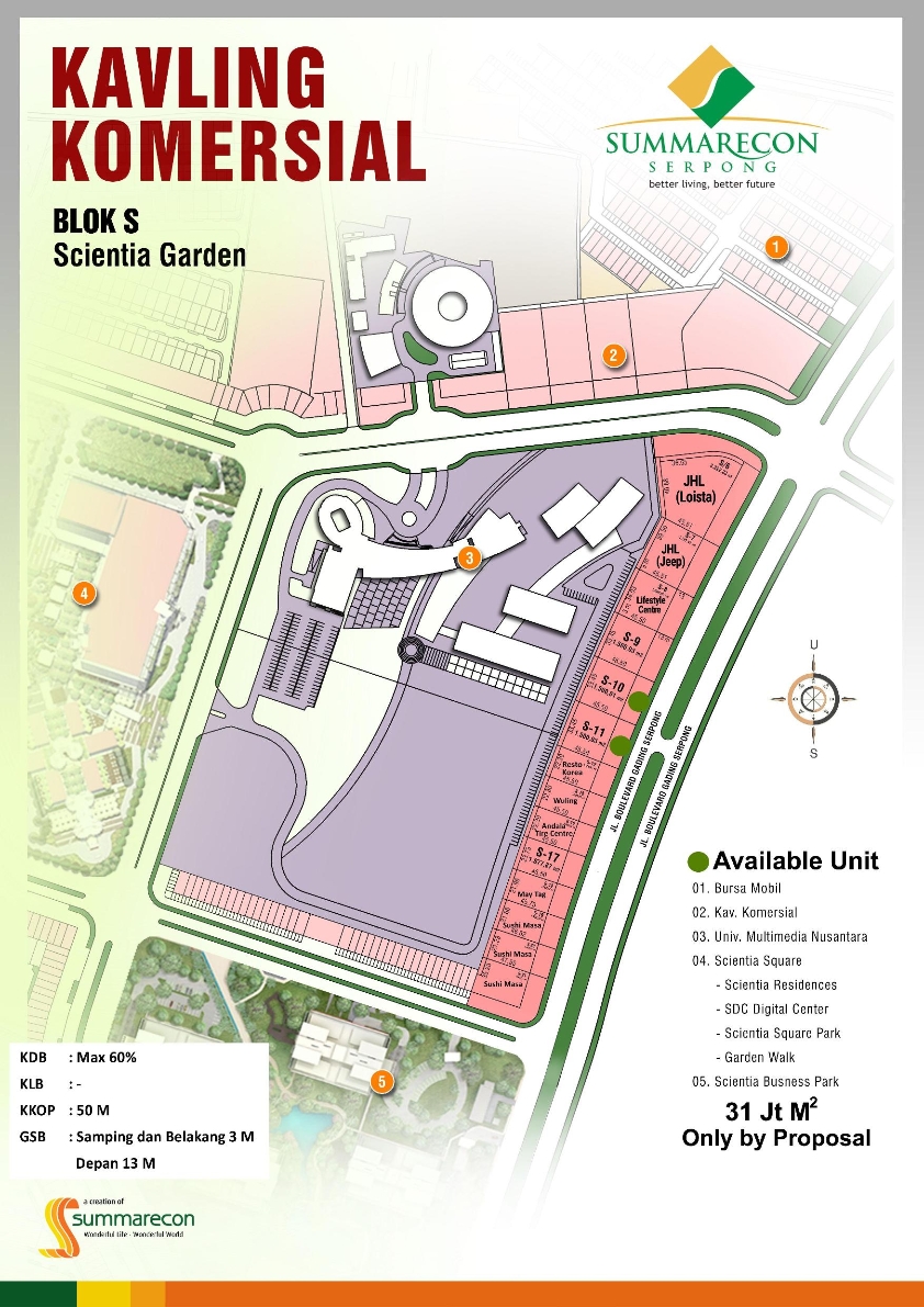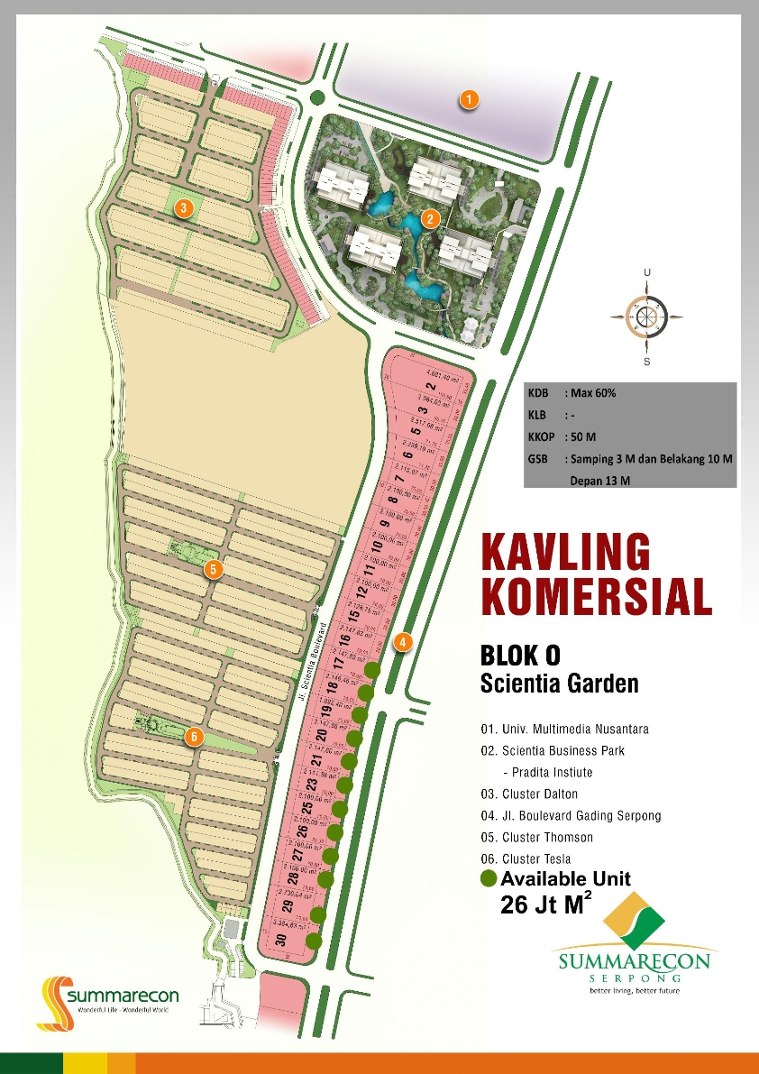 – Lebar Kavling mulai dari 22m (Blok-S) dan 30m (Blok-O)