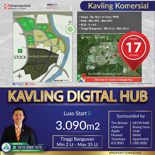 Kavling Komersial BSD City Kavling Digital Hub Start 3.090m2 Tinggi Banguna Max 35 Lt Sinarmasland Tangerang Selatan