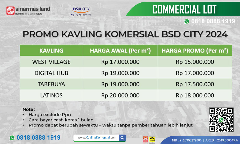 Harga PROMO Terbatas Rp. 17.000.000,- /m2 (excl. PPN)