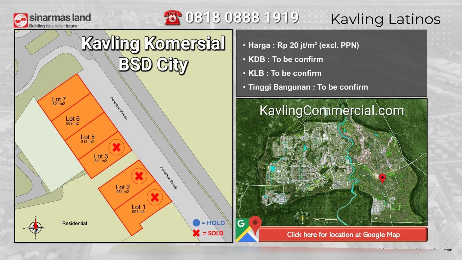 Kavling Komersial LATINOS 809m2 BSD City Sinarmasland - Latinos Business District BSD City, Jalan Raya Rawa Buntu, Rawa Buntu, Kota Tangerang Selatan, Banten, Indonesia