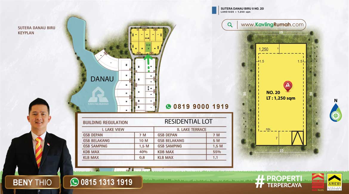 KAVLING SUTERA DANAU BIRU NO. 20 LT. 1250 sqm RESIDENTIAL LOT ALAM SUTERA - Sutera Danau Biru, Pakulonan, Kota Tangerang Selatan, Banten, Indonesia