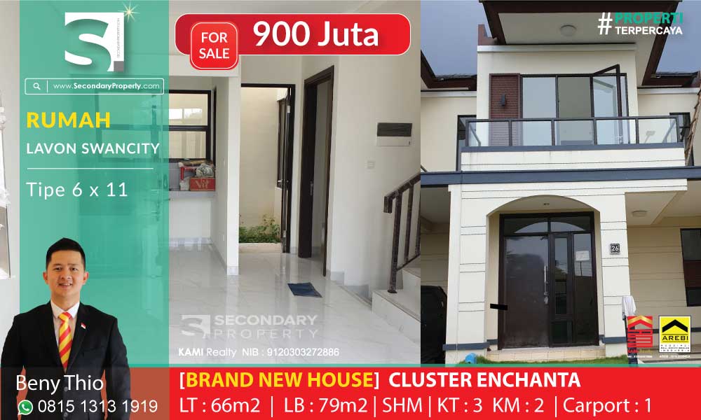 Lavon Swancity Rumah Baru Siap Huni Cluster Enchanta Lt. 66m2 Cikupa New Tangerang City - Perumahan lavon, Wana Kerta, Cikupa, Kabupaten Tangerang, Banten, Indonesia