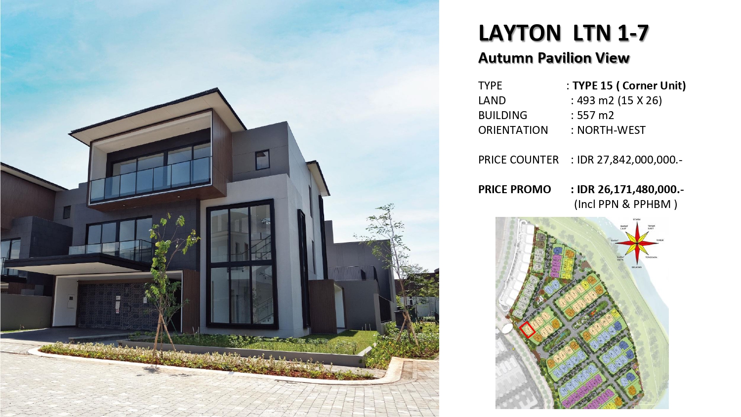 LAYTON LTN 1-7 AUTUMN PAVILION VIEW TYPE 15 CORNER UNIT NORTH WEST NAVAPARK BSD CITY