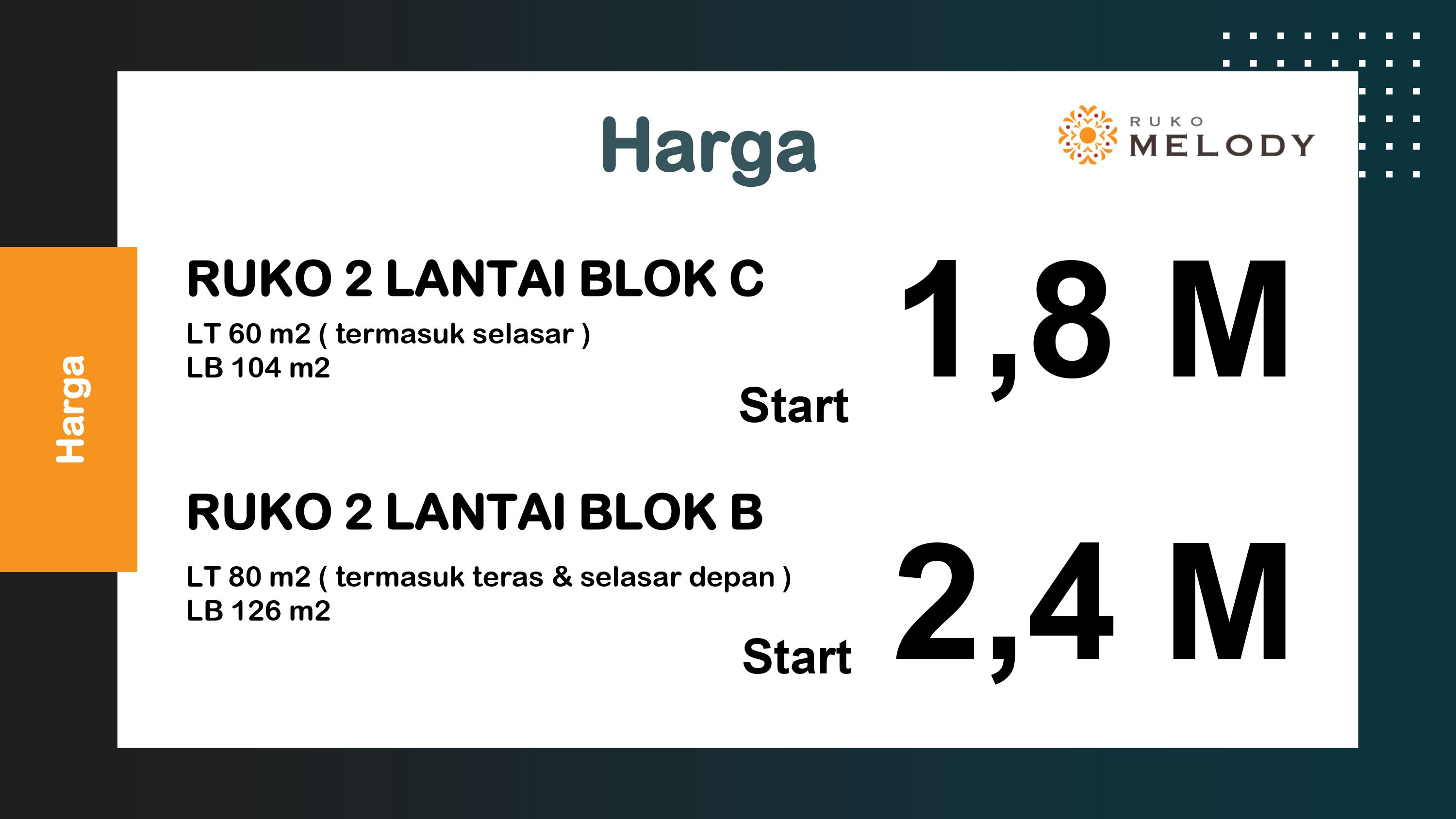 Blok B, tipe ruko 2 lantai, Harga Mulai Rp. 2,4 M-an :