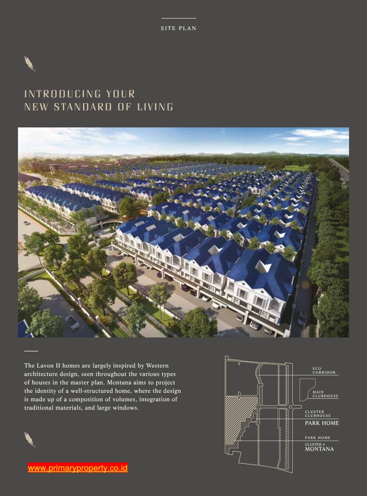 Lavon 2 Tangerang by SwanCity Park Home Series dengan lokasi premium, tepat disebelah CBD Tangerang New City Cikupa. Dan salah satunya adalah Cluster MONTANA.