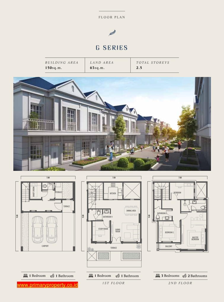 G Series, LT:7×9 (63 m2), LB:146m2, dengan 4+1 KT, 3+1 KM.
