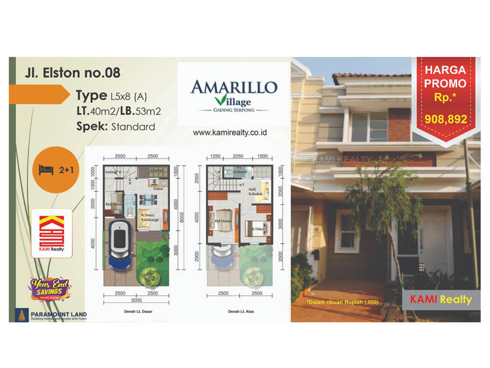 RUMAH | Rp 908.892.000 | 2+1 | 2+1 | 53 |