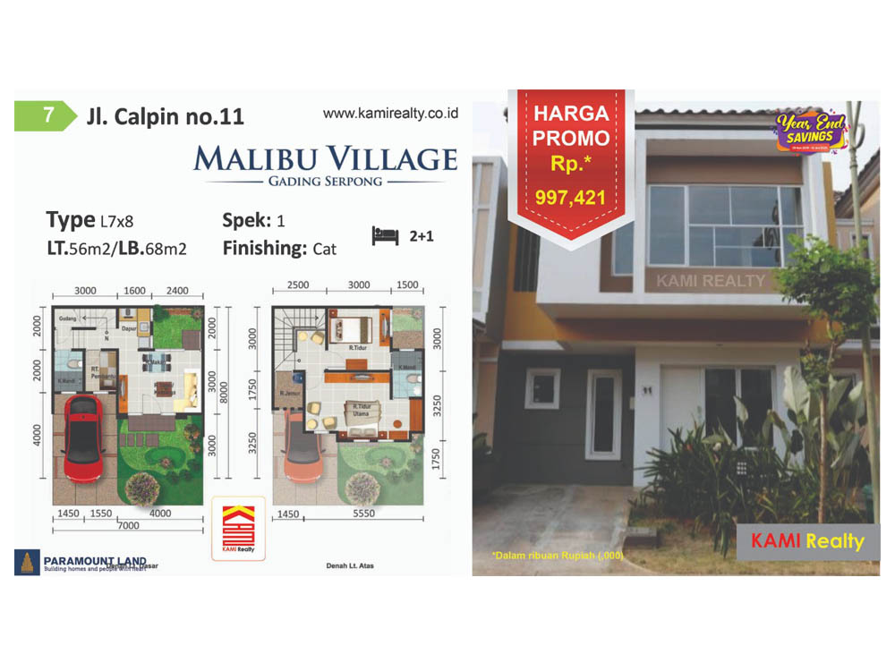 RUMAH | Rp 997.421.000 | 2+1 | 2 | 68 |