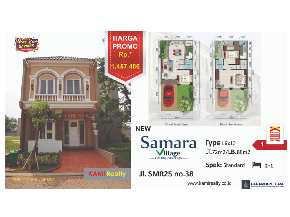 RUMAH | Rp 1.457.486.000 | 2+1 | 2+1 | 88 |