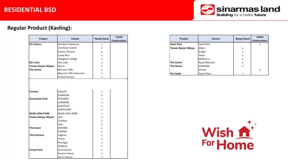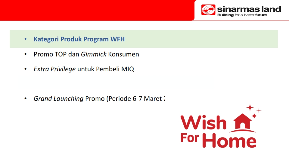 PROMO WISH FOR HOME (WFH) SINARMAS LAND PERIODE MARET-DEC.2021 RESIDENTIAL KAVLING & NON KAVLING