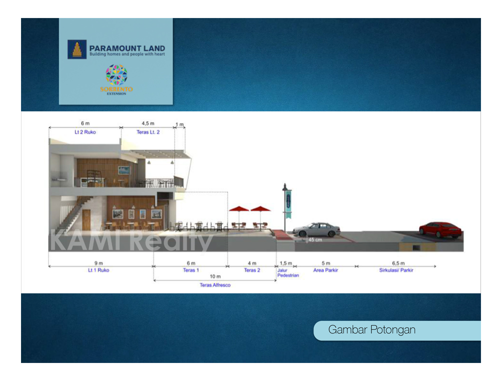 Jln. Sokarno Paramount Gading Serpong BSD menaggio, bellano, montana, Amalfi, omaha village. ada tulisan Ruko SORRENTO Extension, True Alfresco Dinning, Pusat Bisnis Gading Serpong