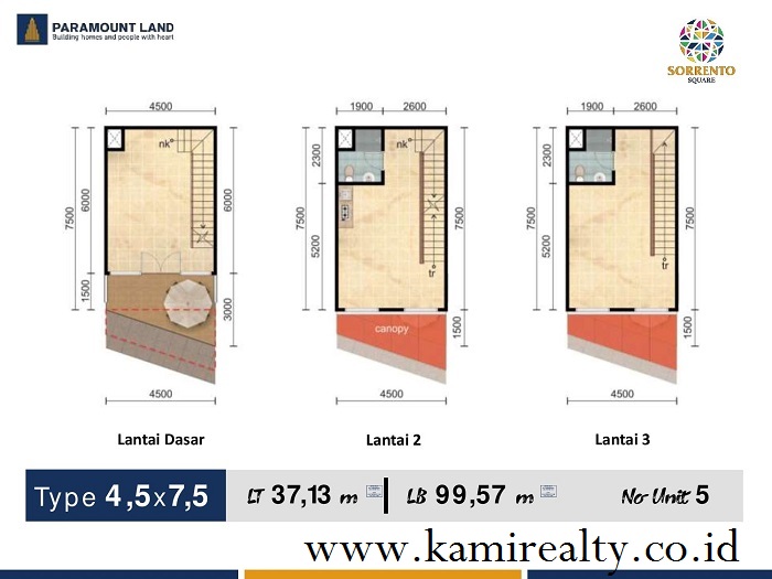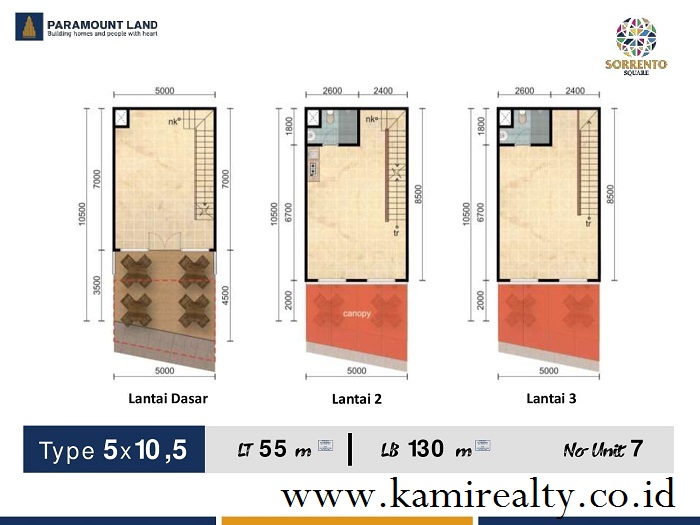 Sorrento Square memiliki tujuh pilihan pada tipe 5 yang bisa Anda pilih sesuai kebutuhan dan keinginan Anda. Tipe tersebut ialah: