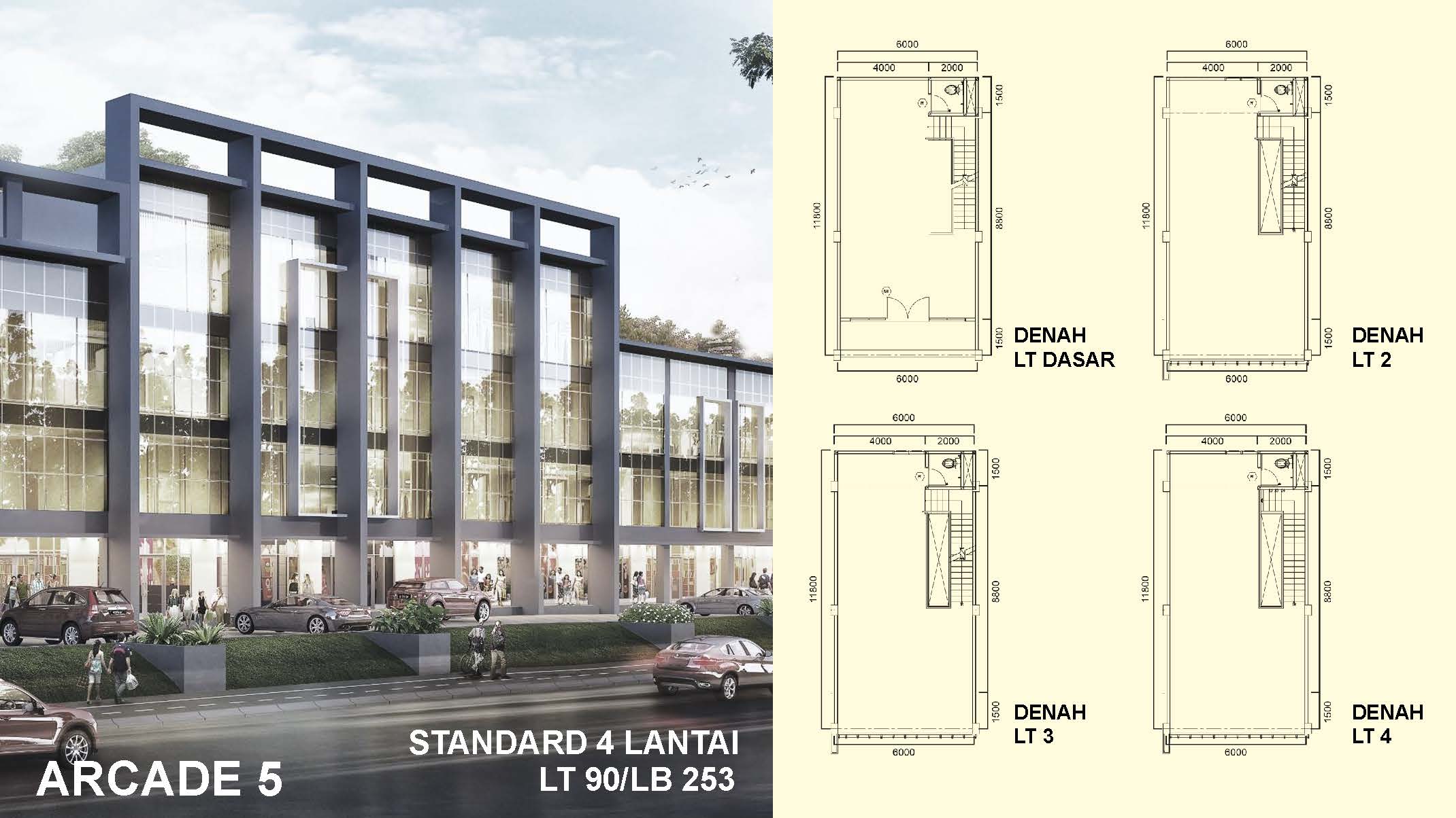 Standard, 4 Lantai dengan Luas Tanah: 90m2 dan Luas Bangunan: 253m2.