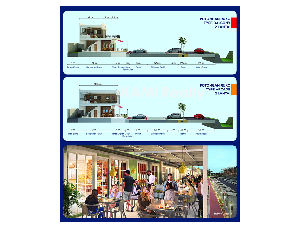 Ruko ini menggunakan konsep mixed used yang sangat cocok untuk usaha F&B (dengan model alfreso dining), office, life style, sport & hobby dan lainnya.