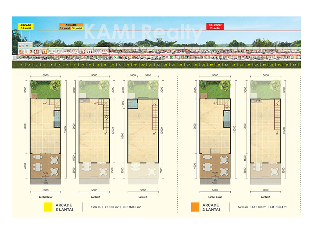 Ruko ini akan dijual dengan tipe 2 atau 3 lantai dengan spesifikasi luas sbb :