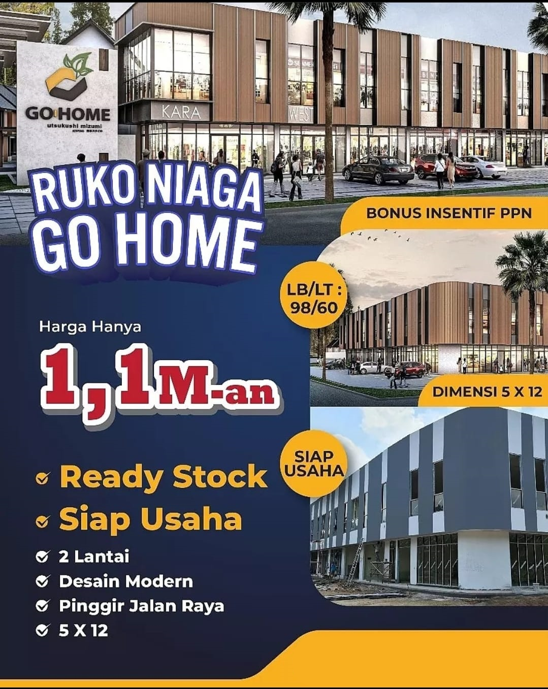 RUKO NIAGA 2 LANTAI HANYA 1,1M @GO HOME - KAMI REALTY ▪︎KAMI PROPERTI, Jalan Boulevard Raya Gading Serpong, Kelapa Dua, Tangerang, Banten, Indonesia