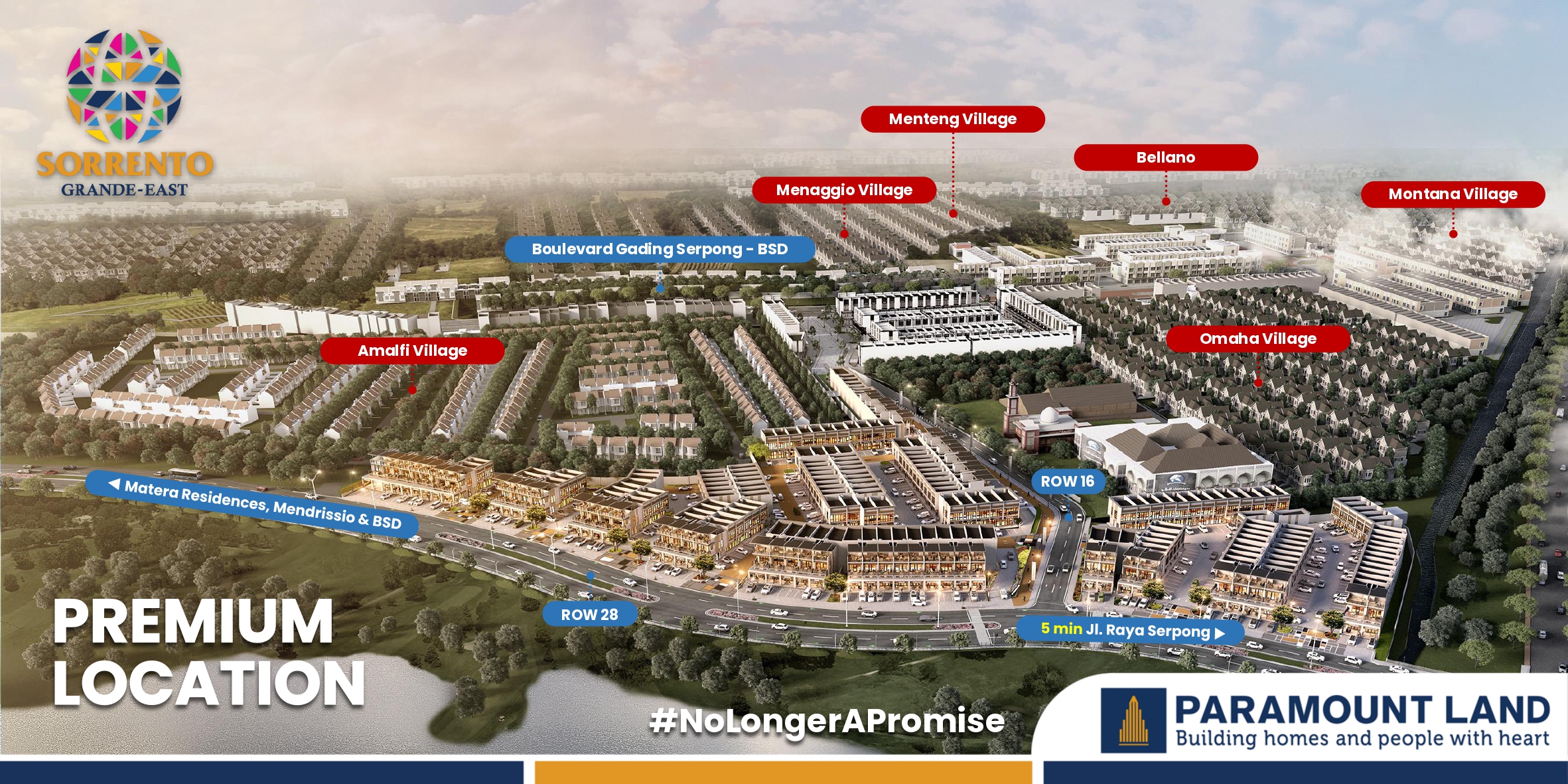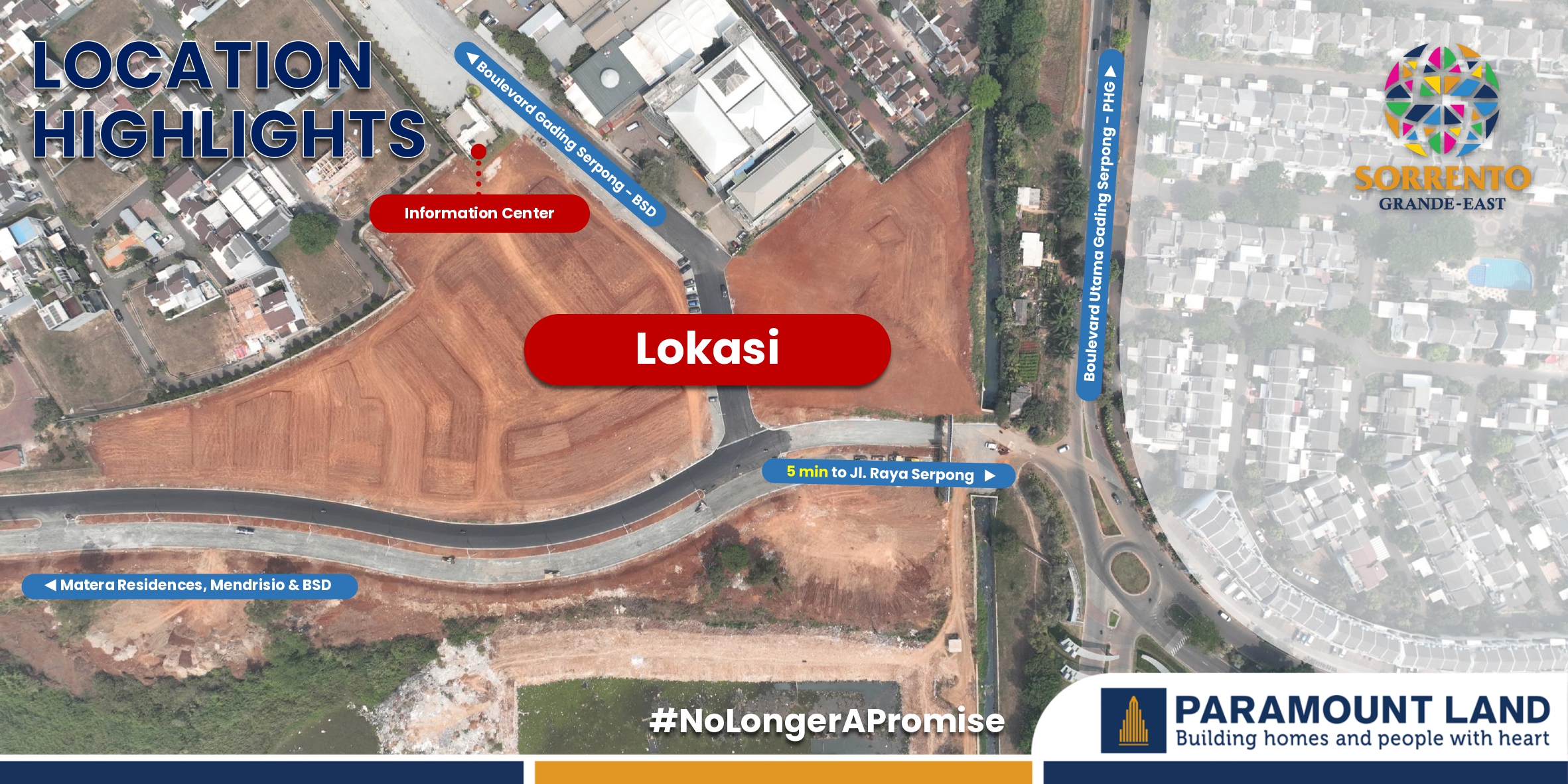 Sorrento Grande – East nanti akan mudah dijangkau dari Jalan Raya Serpong -> Asobirin -> The Springs -> Tembusan ke Area Sorrento (ROW 16), maupun mudah di Akses dari Jl Ir Sukarno.