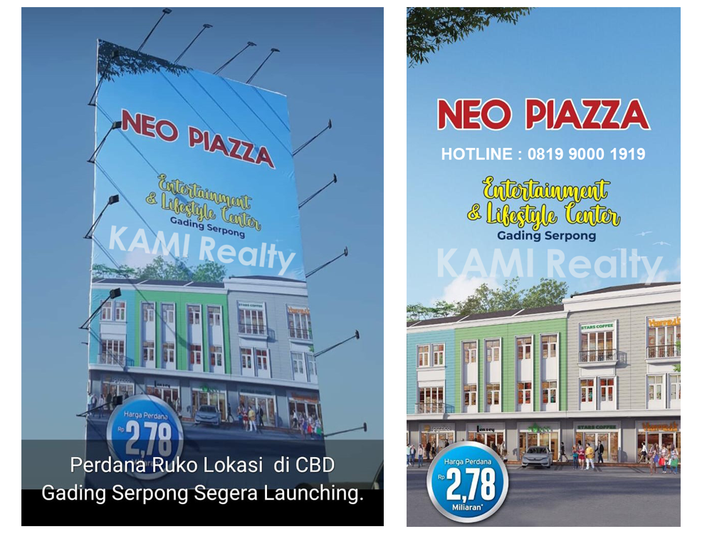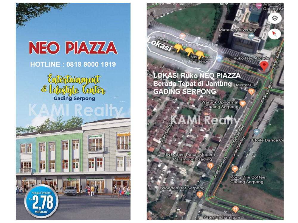 Harga Neo Piazza, ruko 3 lantai terletak di jantung Gading Serpong, start from 2,78 miliaran