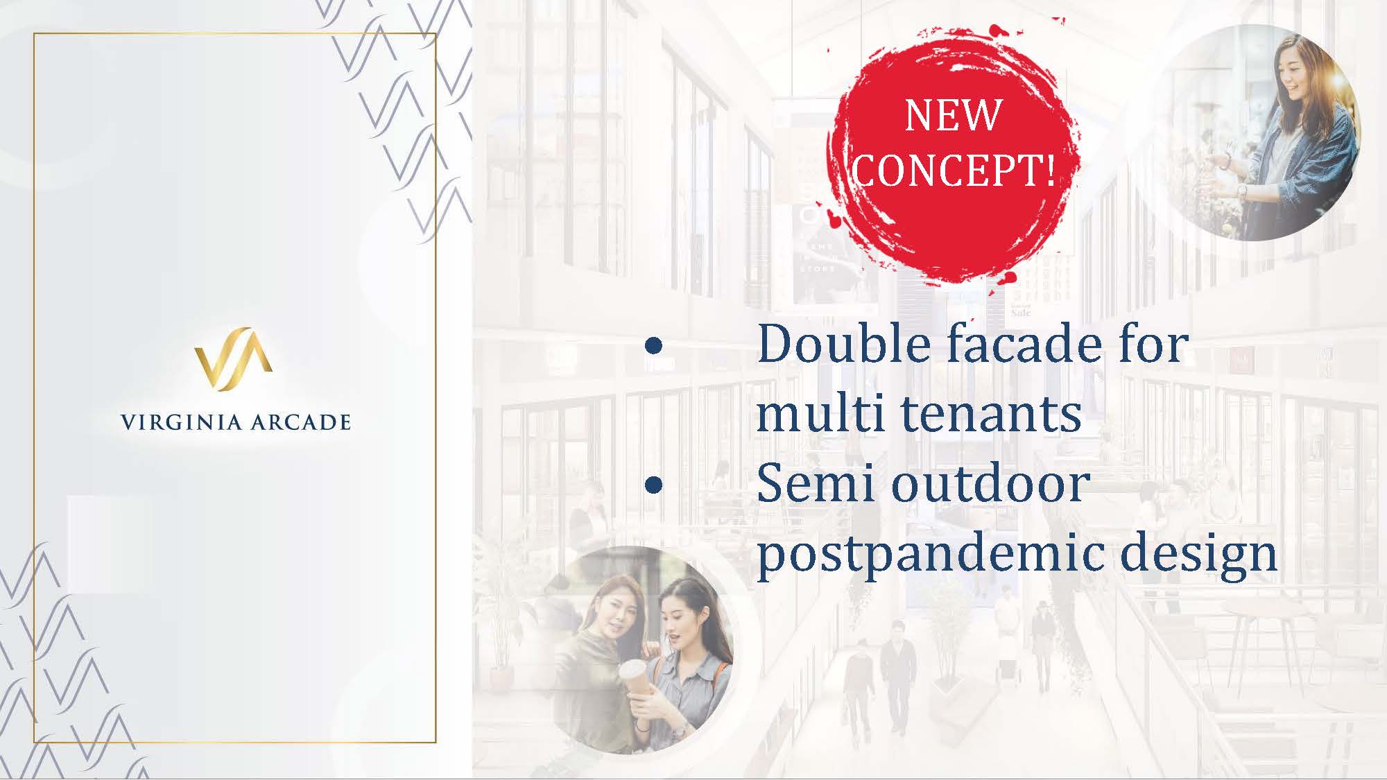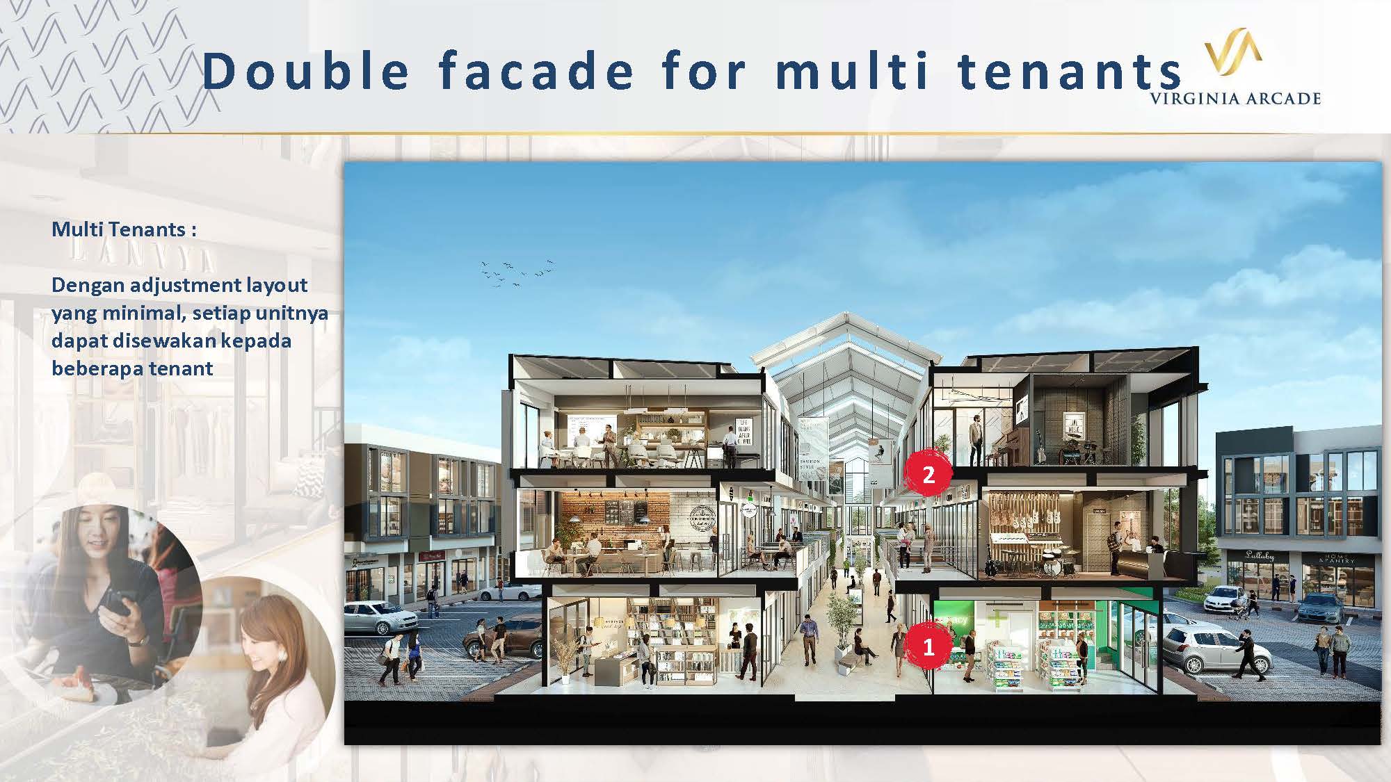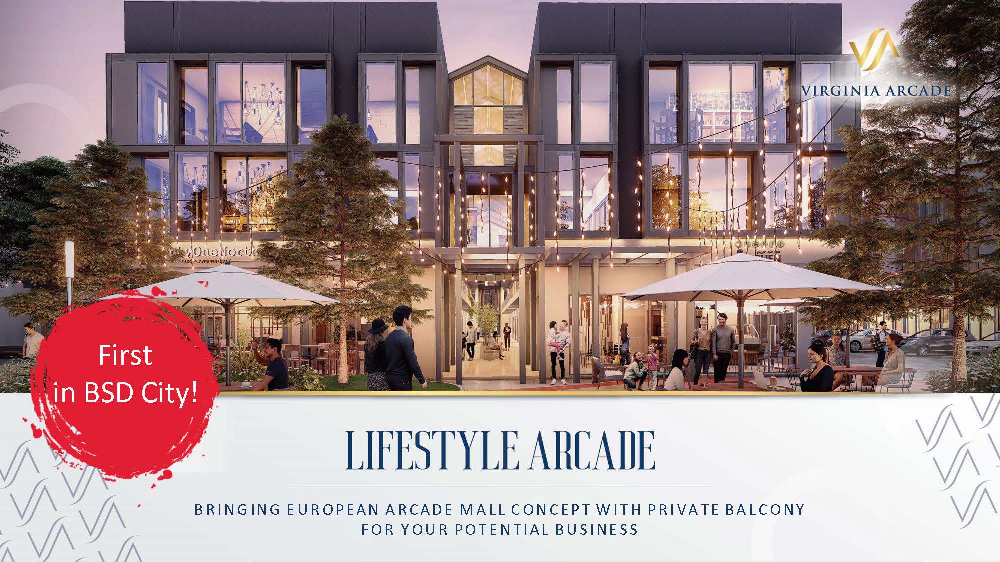 Ruko Virginia Arcade adalah kawasan komersial di BSD City yang mengusung konsep baru yaitu double facade for multi tenants, semi outdoor postpandemic design. Double Facade menghadap Arcade, Facade menghadap Parking Area.