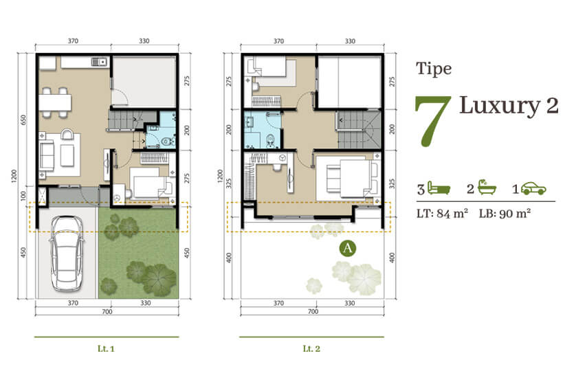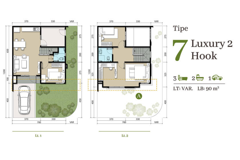 Tipe Luxury 2 menghadirkan 3 kamar tidur dengan layout yang lapang, ideal bagi keluarga yang membutuhkan lebih banyak ruang pribadi.