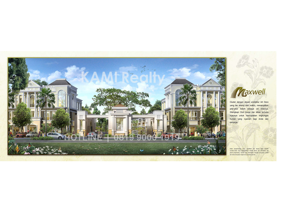 Maxwell Residence, sebuah cluster hunian ke-7 yang berada di dalam kawasan Scientia Garden yang dibangun di atas lahan seluas 5.5 ha. Maxwell merupakan cluster hunian 2 lantai yang mengusung design arsitektur Art Deco. Nikmati waktu bersantai Anda bersama keluarga dengan fasilitas club house yang dilengkapi dengan swimming pool, children playground, serta area terbuka hijau.