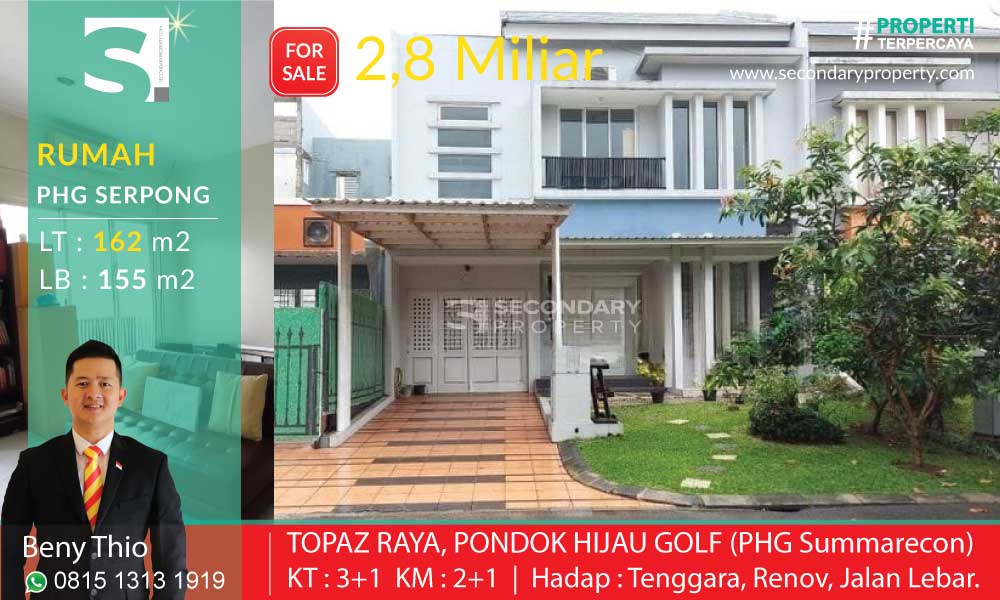 Rumah Lt.162m2 TOPAZ Raya, Pondok Hijau Golf (PHG) Summarecon Serpong Tangerang - Pondok Hijau Golf - Summarecon Serpong, Jalan Crown Utara II, Pakulonan Barat, Kabupaten Tangerang, Banten, Indonesia