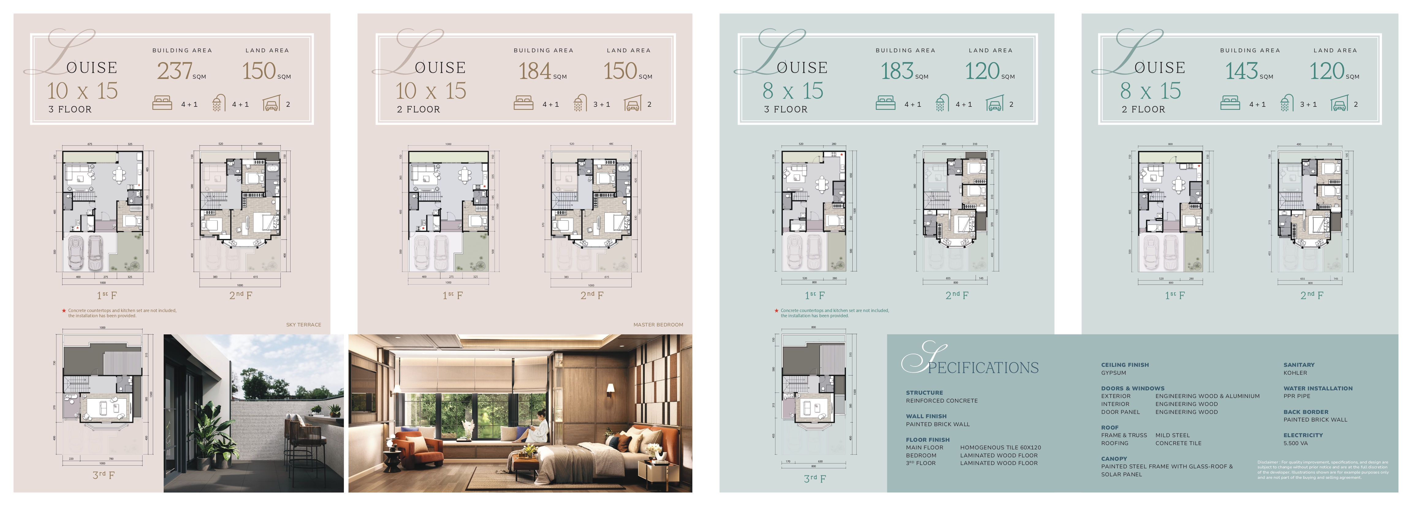 10×15 (2 lantai): Luas Tanah 150 m² / Luas Bangunan 184 m²