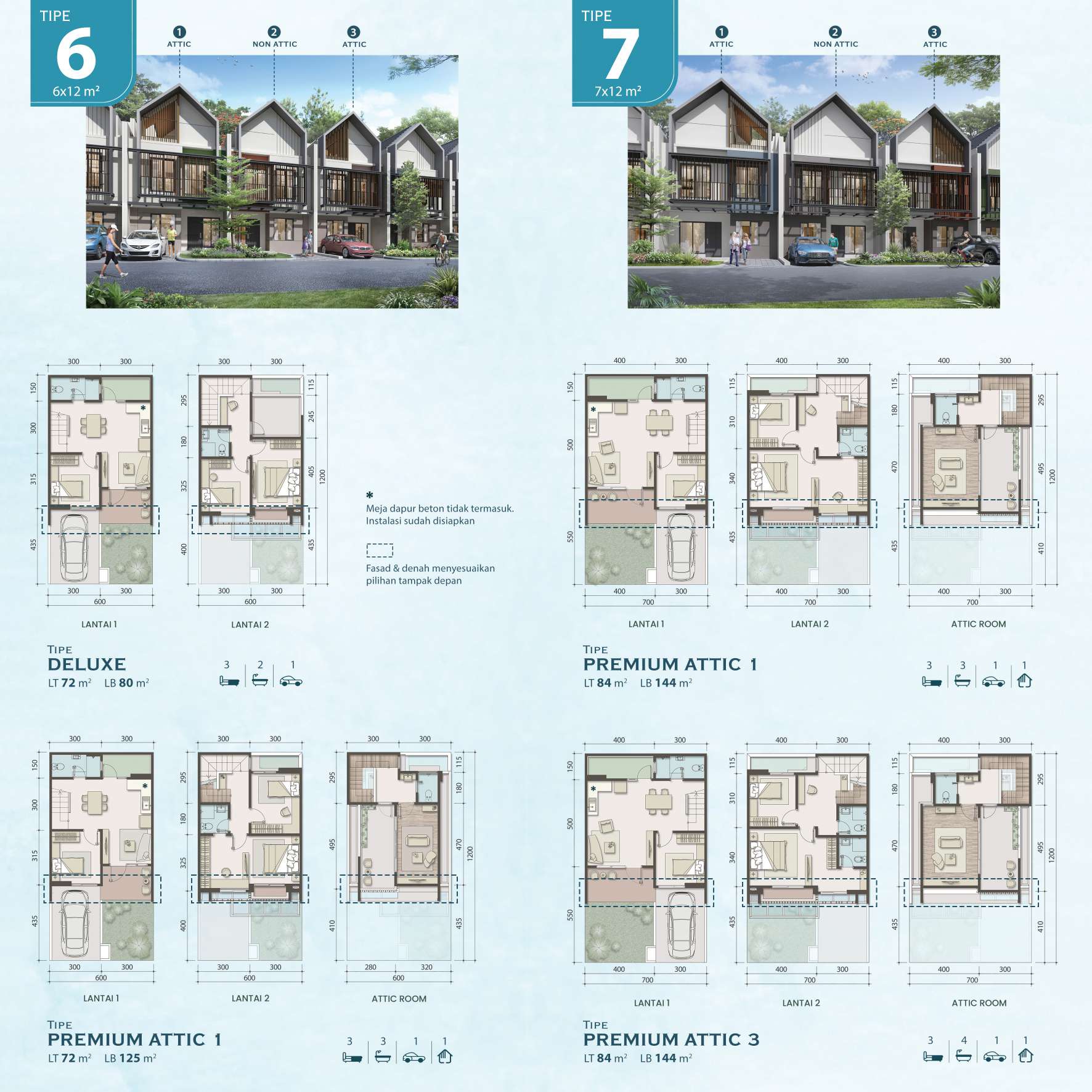 – 6×12 Deluxe: Luas Tanah 72 m² / Luas Bangunan 80 m²