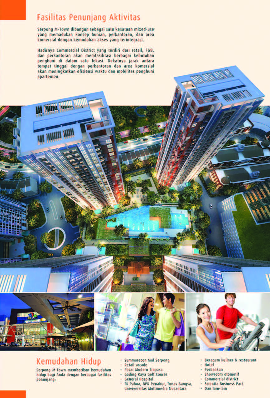 Serpong M-Town dibangun sebagai satu kesatuan mixed use yang memadukan konsep hunian, perkantoran, dan area komersial dengan kemudahan akses yang terintegrasi.