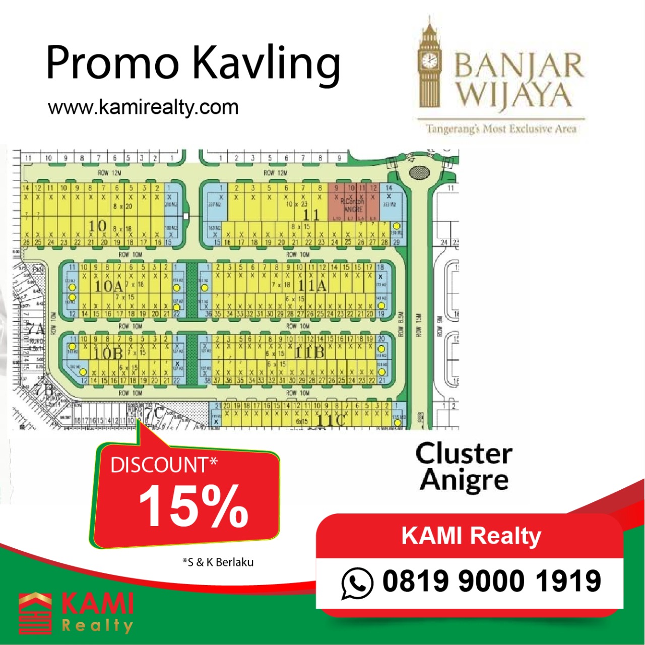 PROMO DISKON 15% TANAH KAVLING SIAP BANGUN DI CLUSTER ANIGRE BANJAR WIJAYA TANGERANG