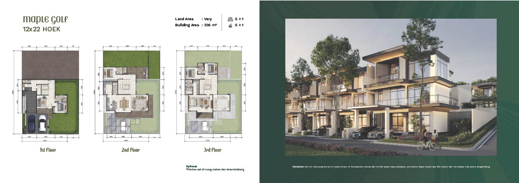 – Luas Bangunan: 330 m² (Standard) / 336 m² (Hoek)