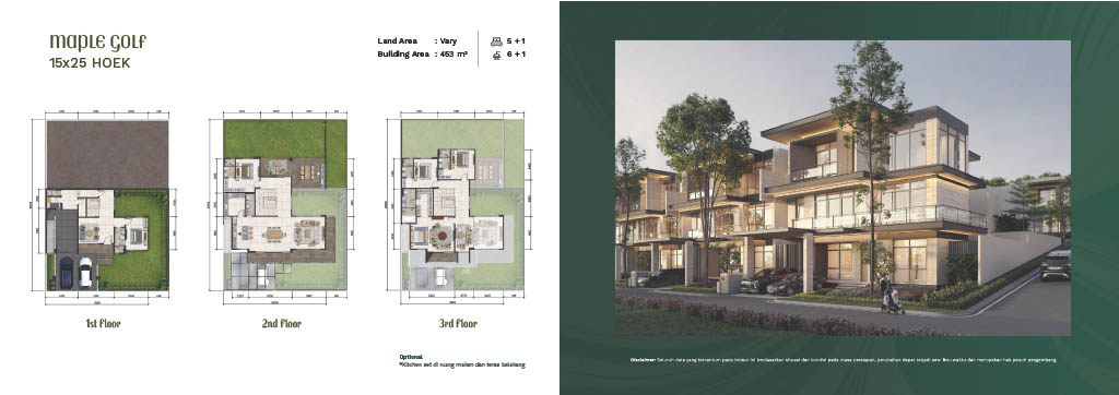 – Luas Bangunan: 446 m² (Standard) / 453 m² (Hoek)