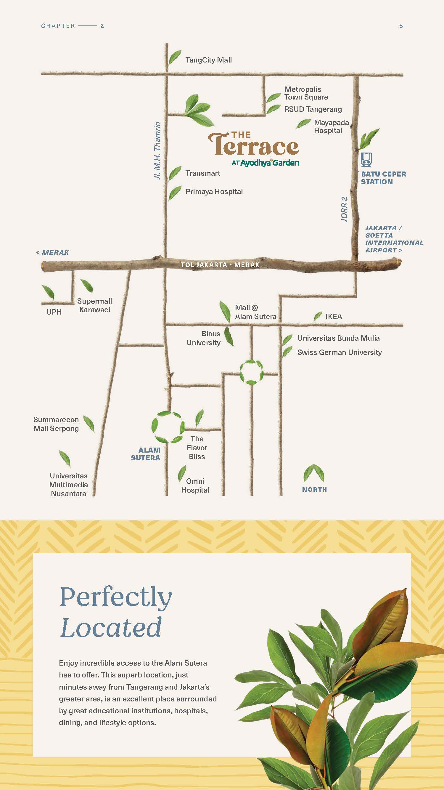 Sebagai hunian yang terletak di Alam Sutera, Tangerang. The Terrace At Ayodhya Garden memiliki lokasi yang sangat strategis: