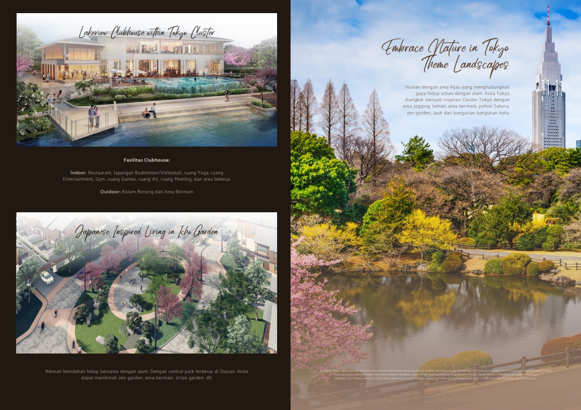 Sebuah konsep yang menawarkan pengalaman unik tersendiri bagi setiap penghuni cluster ini. Inilah kesempatan Anda merasakan ketenangan dari harmoni alam dibalut nuansa modern Tokyo yang memikat.