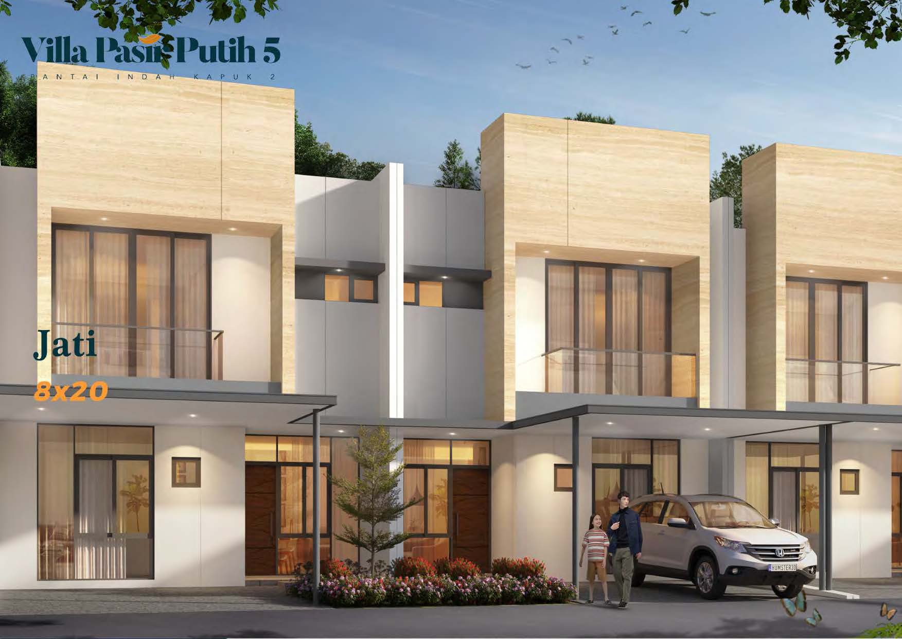 Villa Pasir Putih 5 terletak di Mega Proyek PIK 2. Hasil dari kolaborasi Agung Sedayu Group dan Salim Group ini, menghadirkan konsep Green Living yang juga dilengkapi dengan danau.