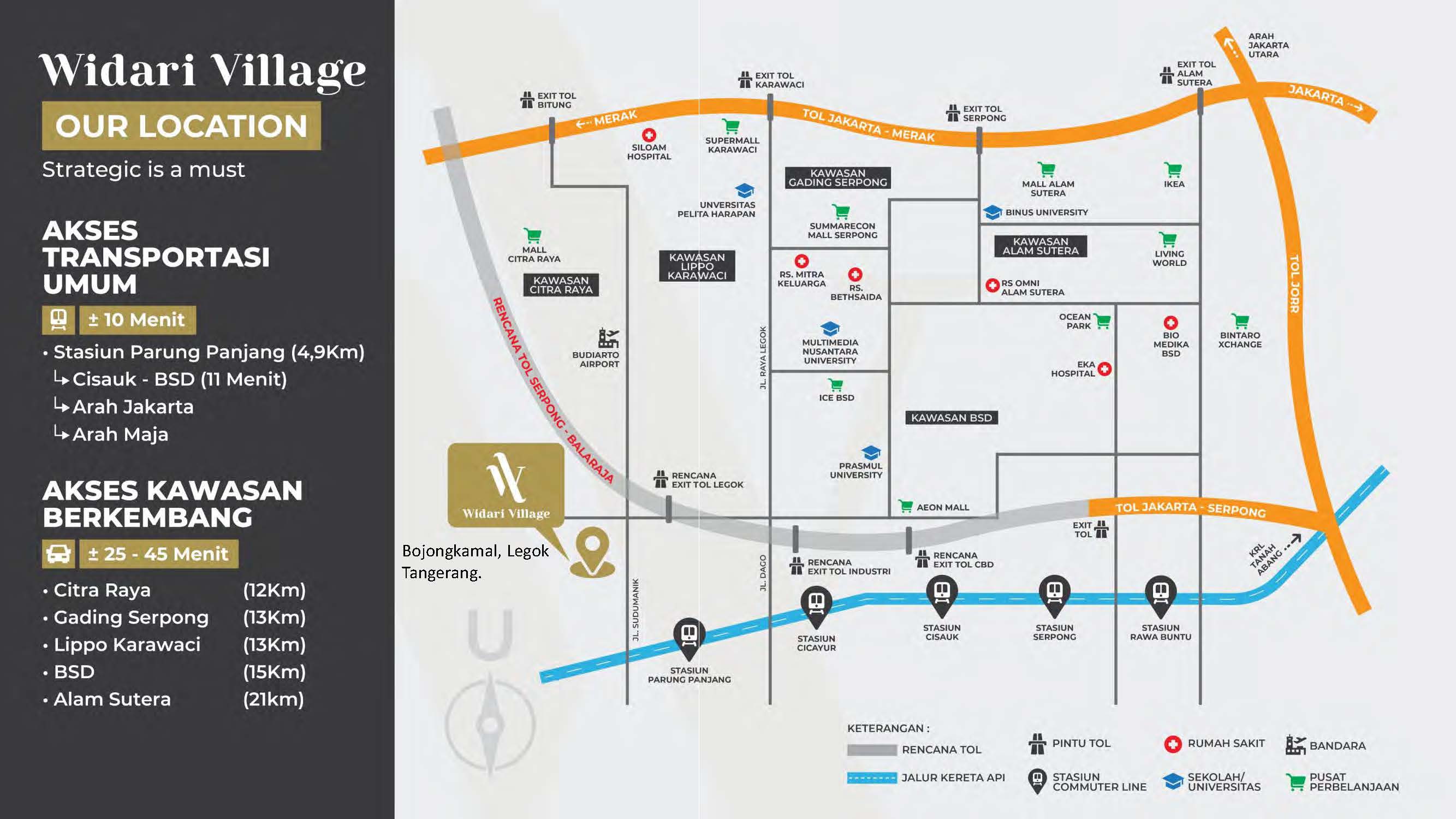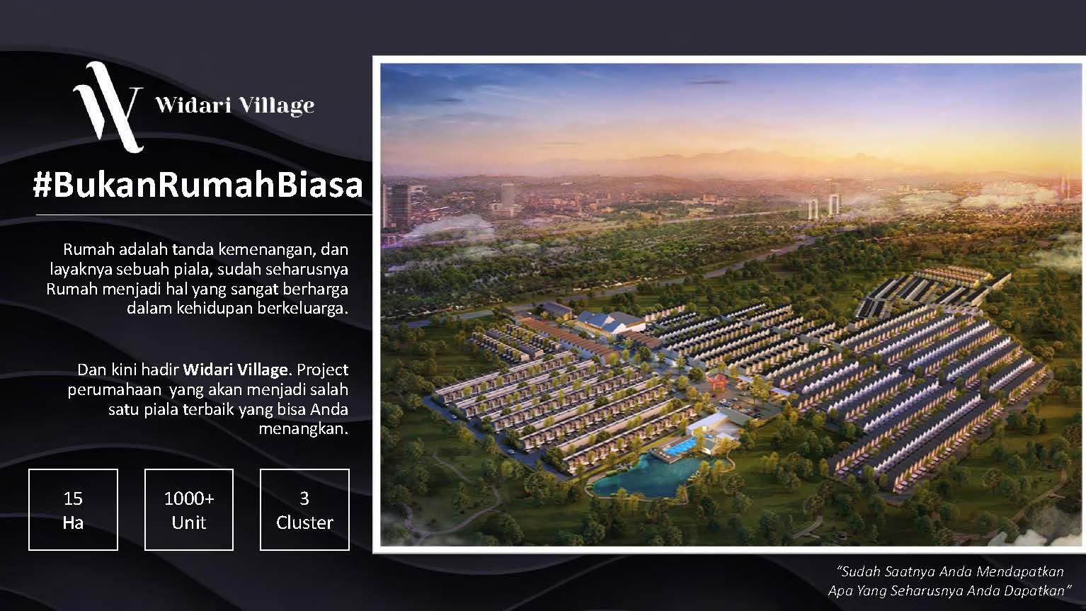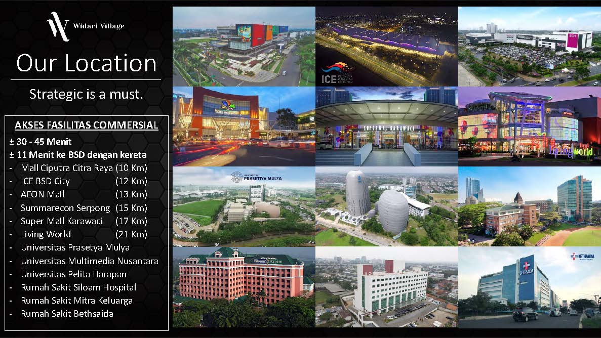 Widari Village adalah produk residential hasil pengembangan dari Wida Agung Group. Terletak di Legok, Tangerang. Lokasi sangat strategis yakni hanya 10 menit dari Rencana Exit Tol Legok (Tol Serpong – Balaraja) & Stasiun Parung Panjang.